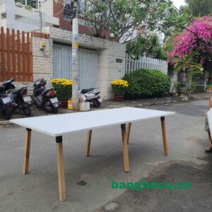 Bàn họp văn phòng dài 2m4 chân gỗ tự nhiên mới 90% thanh lý