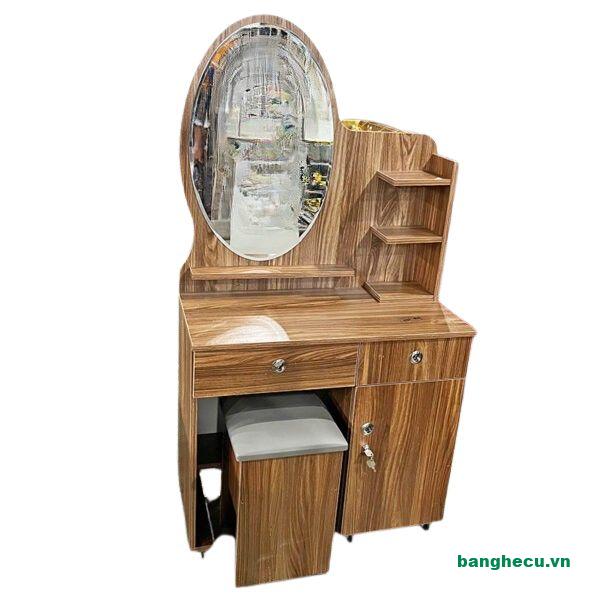 Bàn trang điểm gỗ nâu gương Oval hiện đại tồn kho