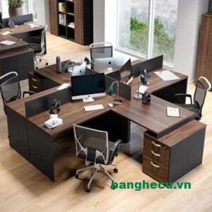 - Mô tả: Bộ bàn ghế làm việc thiết kế kiểu cụm, quây lại với nhau, 4 chỗ ngồi làm việc, đóng mới tại xưởng, không qua trung gian. Thiết kế thông minh, tối ưu không gian làm việc chung, ghế ngồi thoải mái hỗ trợ hiệu quả công việc. Sản phẩm bền đẹp, mang lại sự tiện nghi và hiện đại cho mọi môi trường làm việc.