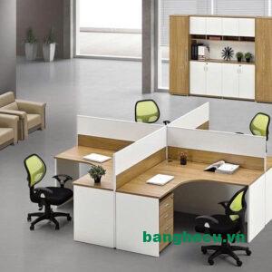 - Mô tả: Bộ bàn ghế làm việc thiết kế kiểu cụm, quây lại với nhau, 4 chỗ ngồi làm việc, đóng mới tại xưởng, không qua trung gian. Thiết kế thông minh, tối ưu không gian làm việc chung, ghế ngồi thoải mái hỗ trợ hiệu quả công việc. Sản phẩm bền đẹp, mang lại sự tiện nghi và hiện đại cho mọi môi trường làm việc.